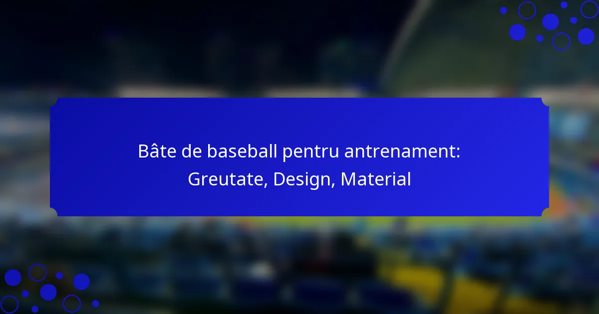Designul batelor de antrenament pentru baseball influențează semnificativ performanța și utilizabilitatea acestora. Aspecte cheie, cum ar fi distribuția greutății, dimensiunea barrel-ului și tipul de grip, pot îmbunătăți experiența de antrenament a unui jucător prin îmbunătățirea mecanicii swing-ului și eficienței contactului.